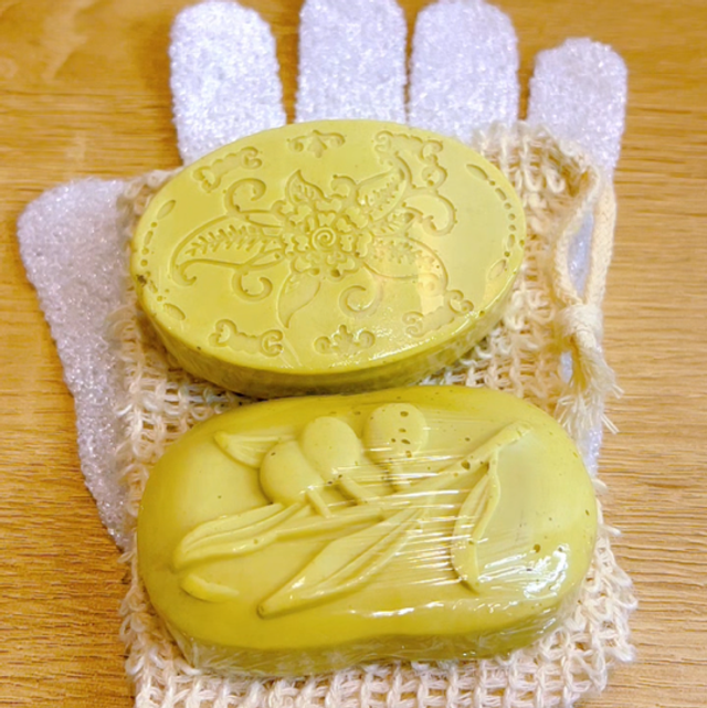 - Hydratation intense : grâce à sa richesse en vitamines A, C et E, le savon nourrit la peau en profondeur.